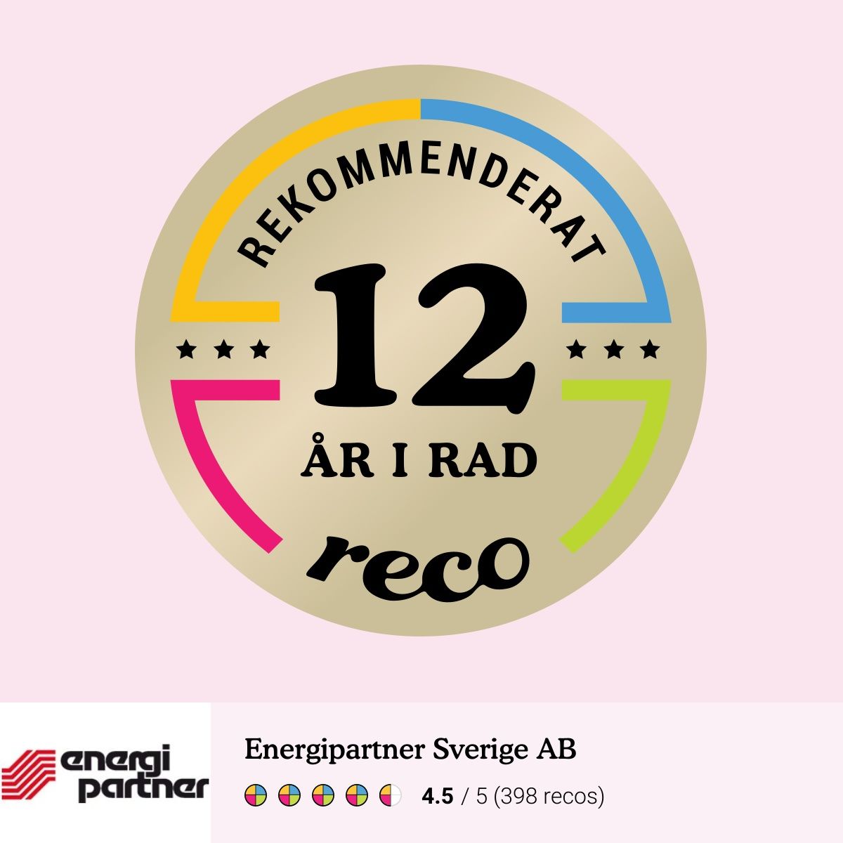 Att bli ett Rekommenderat företag hos Reco innebär bland annat att kundernas snittomdömen måste vara minst 4.0 (av 5), något vi med råge överträffar. Och att göra det 12 år i rad bevisar att vi levererar en jämnt hög kundupplevelse under en mycket lång, obruten period. I ärlighetens namn förekommer några få plumpar i protokollet, där kundupplevelsen blivit mindre bra. Dessa tar vi alltid på största allvar och gör vårt yttersta för att ställa tillrätta, vi ser dessa som lärdomar vi behöver ta till oss för att ytterligare förbättra våra processer.